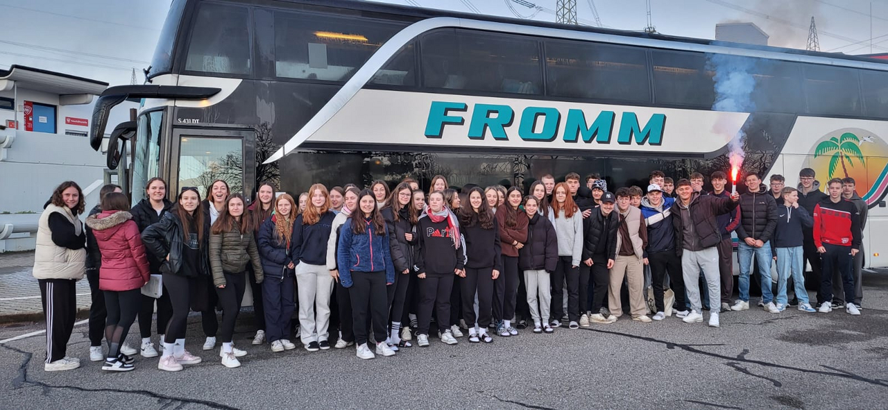 Begleitet wird die große Gruppe der Spielerinnen und Spieler von 9 Trainer/-innen und Betreuer/-innen.