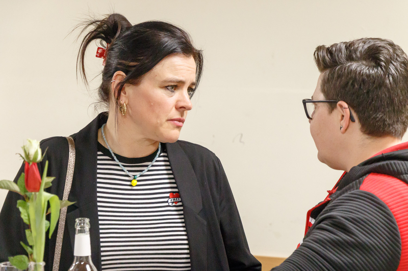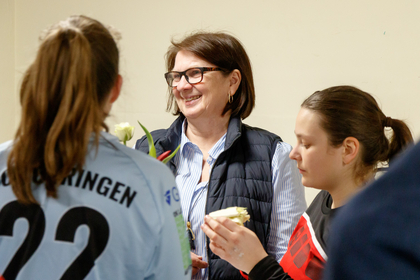 Nach Schlusspfiff und bis zum Anpfiff des Spiels der Herren bot sich nochmals die Gelegenheit bei einer kleinen Stärkung den Blick auf die Abteilung zu richten. Es wurde deutlich, wie wichtig die finanzielle Unterstützung für die Entwicklung des Vereins ist und wie sorgfältig die Mittel eingesetzt werden, um das Beste für die Spielerinnen und Spieler in allen Altersgruppen bis zu den Minis herauszuholen. Unter die Gäste mischten sich nun Spielerinnen der Frauenmannschaft und es bot sich sogleich die Gelegenheit über das Sportliche zu sinnieren.