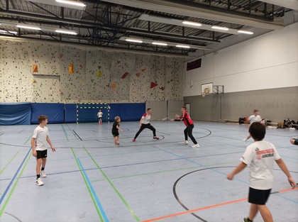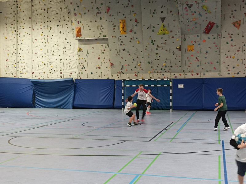 Nach der theoretischen Einführung ging es auf das Spielfeld, wo die Kinder in verschiedenen Übungen und kleinen Spielen ihre neu erworbenen Kenntnisse in die Praxis umsetzen konnten. Die Atmosphäre auf dem Spielfeld war von Begeisterung und Freude geprägt, während die Kinder ihre Teamfähigkeit und Geschicklichkeit unter Beweis stellten.