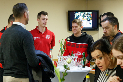Der Ausklang fand dann im Foyer statt, wo man mit Spielerinnen und Spielern, Fans und Besuchern nochmals die Spiele Revue passieren lassen konnte.
