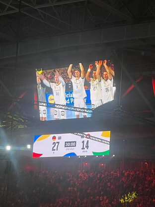 Die SC Vöhringen-Delegation war in den Vereinsfarben gekleidet und zeigte stolz ihr Vereinslogo. Es war ein erhebender Anblick, wie die Gruppe voller Begeisterung und Teamgeist das Spiel unterstützte und ihre Leidenschaft für den Handballsport zeigte. In mehreren Blöcken verteilt, sah man immer wieder die rot- weißen Vereinsfarben aufblitzen, wenn man sich in der Halle umschaute.