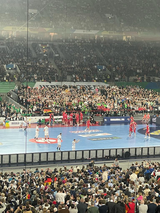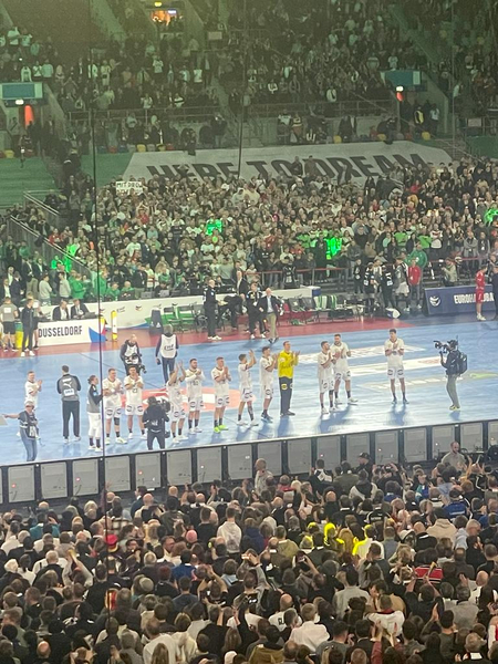 Unter diesen Zuschauern war auch eine kleine Delegation Vöhringer Handballer, die sich auf den Weg nach Düsseldorf machten, um bei diesem Highlight dabei zu sein. Theresia, Annika und die Brüder Leon und Jonas waren unter den zahlreichen Zuschauern.